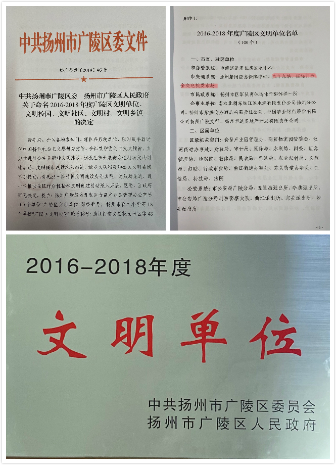 東站、五金市場獲2016--2018年度廣陵區(qū)“文明單位”榮譽稱號