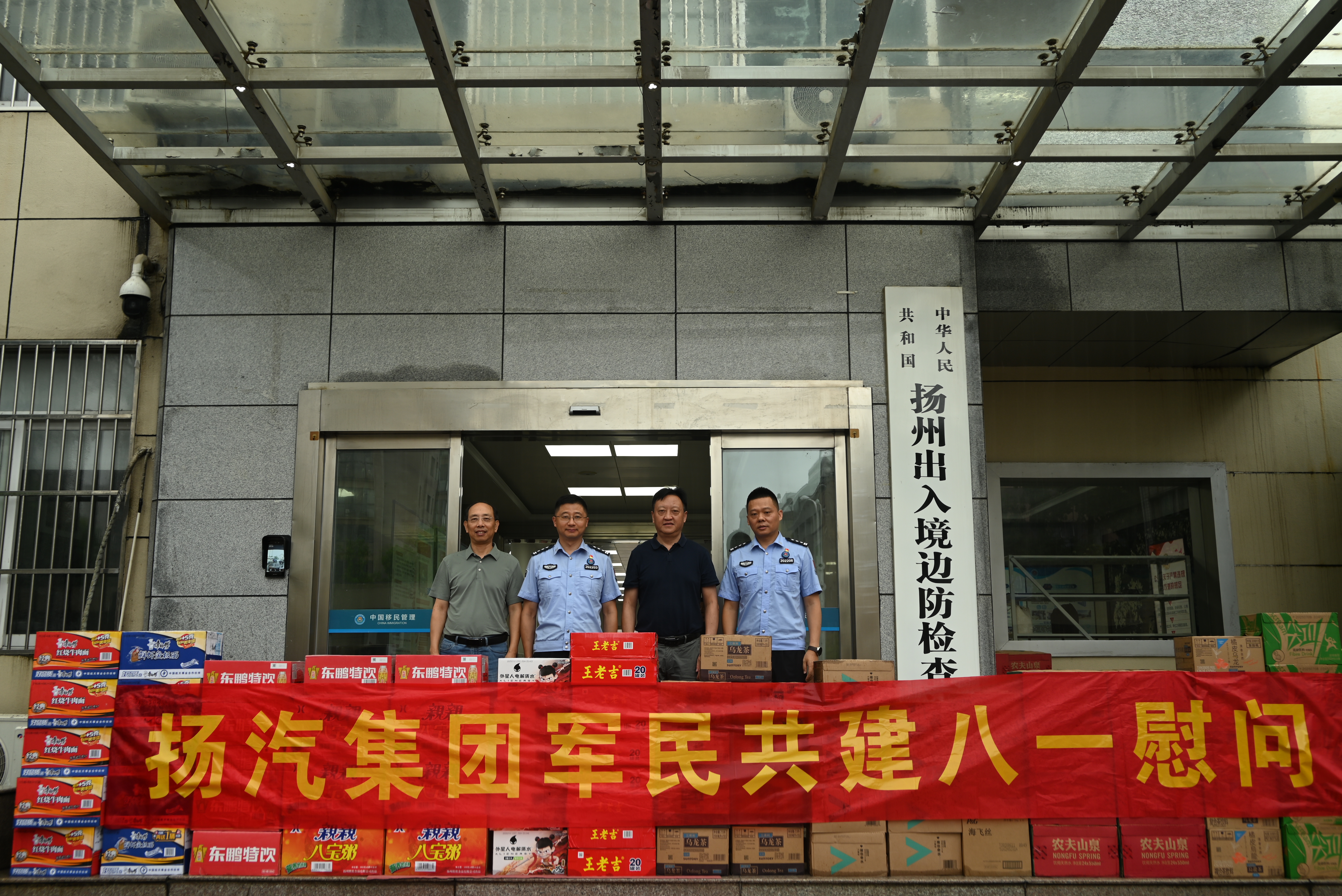 在“八一”建軍節(jié)即將來臨之際,7月31日,揚汽集團黨委副書記、副董事長、總經(jīng)理劉俊一行,前往黨建共建單位揚州出入境邊防檢查站進(jìn)行走訪慰問,向官兵們送上節(jié)日的祝福和誠摯的問候。揚州出入境邊防檢查站副站長李崗,揚汽集團黨委副書記、紀(jì)委書記、工會主席陳家宏參加活動。