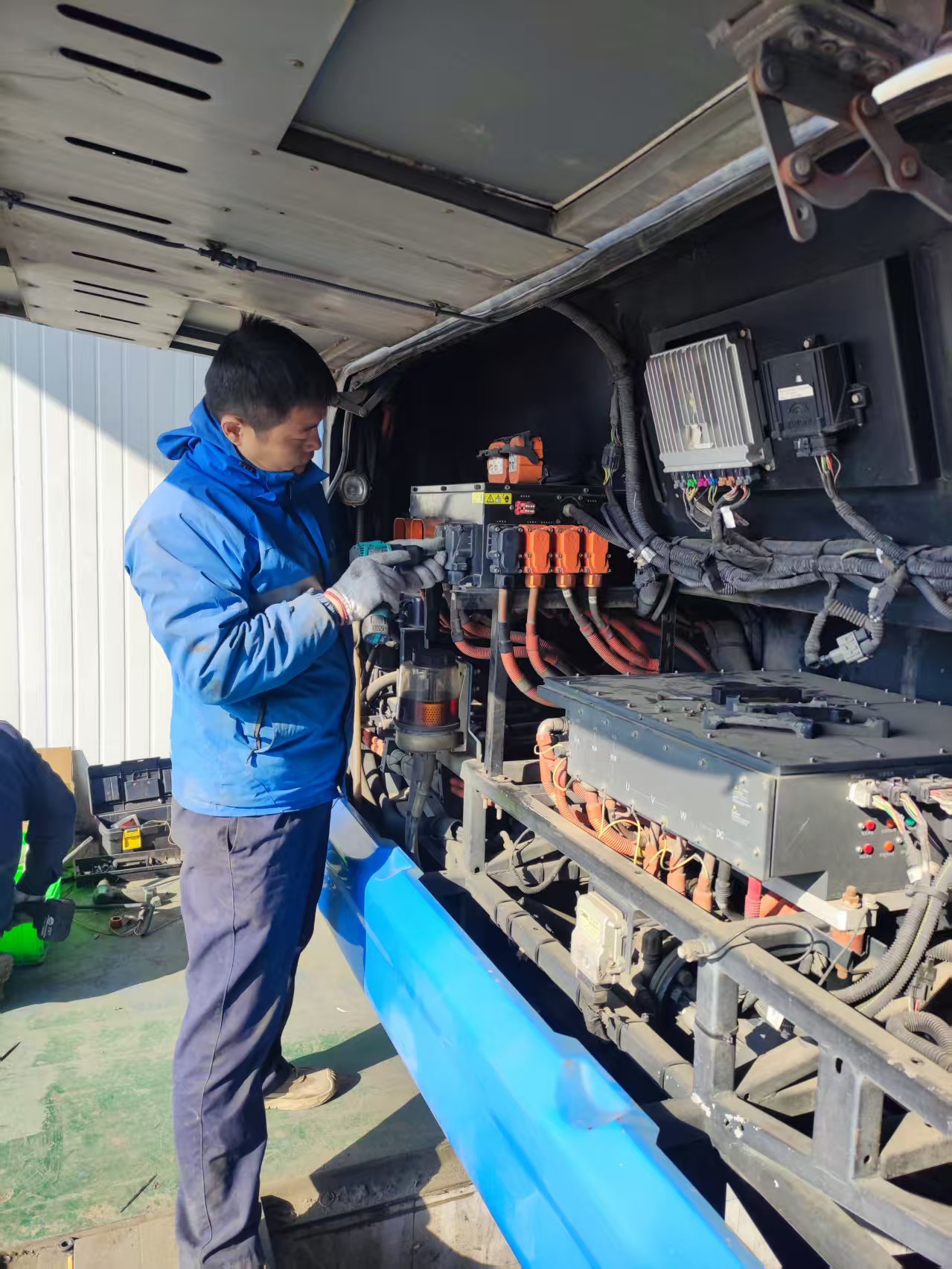 任務(wù)執(zhí)行期間,團(tuán)隊克服了異地作業(yè)環(huán)境復(fù)雜、設(shè)備適配等多重實際困難,黨員同志始終沖鋒在前,帶領(lǐng)技術(shù)團(tuán)隊優(yōu)化工序、協(xié)同配合,在保障作業(yè)安全與質(zhì)量的前提下,全力壓縮工期,高效完成車輛換電,確保車輛按時恢復(fù)運營。過程中,團(tuán)隊還圍繞操作規(guī)范、電池維保等內(nèi)容,與當(dāng)?shù)丶夹g(shù)人員開展了務(wù)實交流,助力提升區(qū)域運維能力。